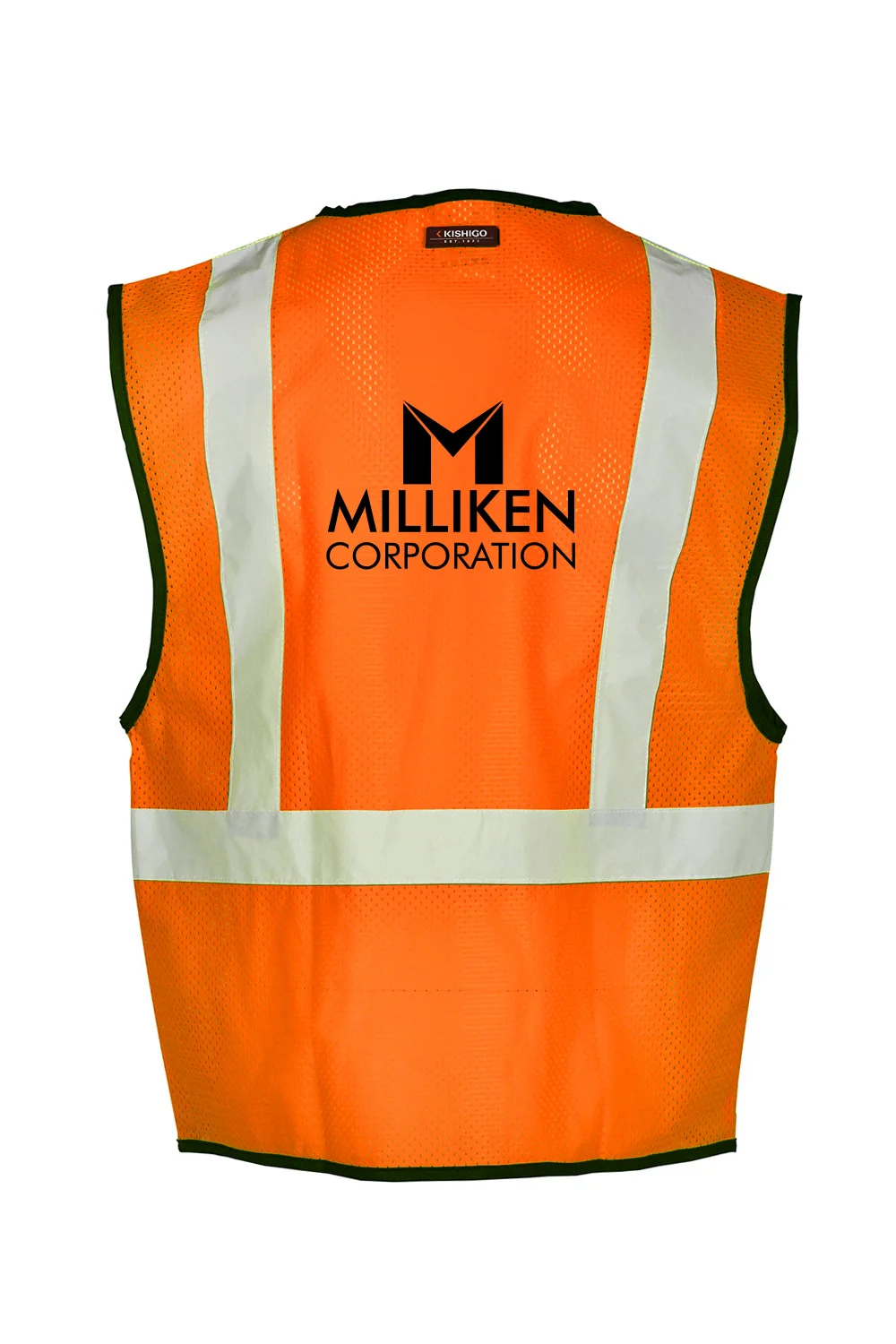 The Kishigo 1520 Economy Class 2 Mesh Safety Vest is a lightweight and functional high visibility vest designed for safety and everyday work use. Made from 100% polyester mesh, it offers breathability and comfort in active environments. The front zipper closure allows for easy wear, while 2 inch wide reflective material enhances visibility in low light conditions. A left chest mic tab and outer chest pocket provide added convenience for essential tools and communication devices.
